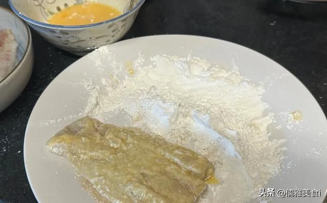 2. 碗中打入一个鸡蛋搅散,将腌制好的巴沙鱼块先裹一层薄薄的蛋液,再均匀沾上一层玉米淀粉,锁住鱼肉水分,煎出来更鲜嫩。