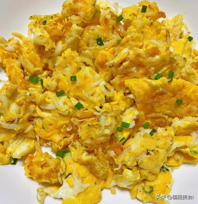 4. 炒至鸡蛋完全熟透、金黄蓬松,撒上小葱花翻炒均匀,即可出锅,鲜香味美,配饭配粥都超合适。