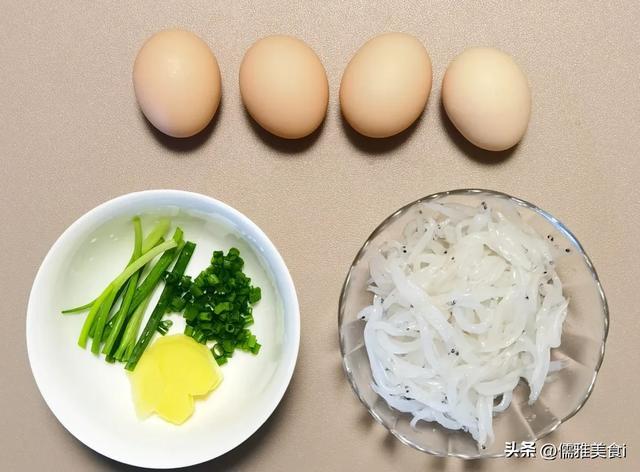 新鲜小银鱼100克、鸡蛋3个、姜丝少许、料酒半勺、食盐半勺、小葱花1把、食用油适量