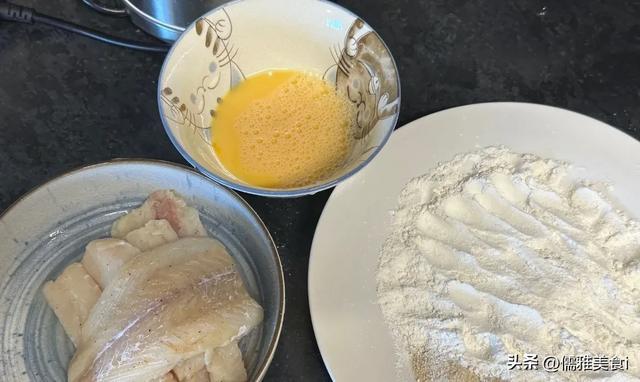 1. 把巴沙鱼柳解冻后,用厨房纸巾擦干表面水分,切成大小均匀的厚块,加姜片、一勺料酒、少许食盐,抓匀腌制15分钟,充分去除鱼腥味。