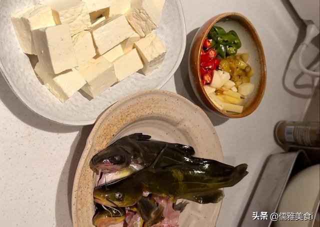 1. 让摊主帮忙处理好昂子鱼,回家冲洗干净血水,鱼身划两刀方便入味,加料酒、姜片腌制10分钟去腥,嫩豆腐切成小块备用。
